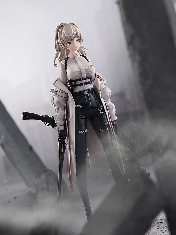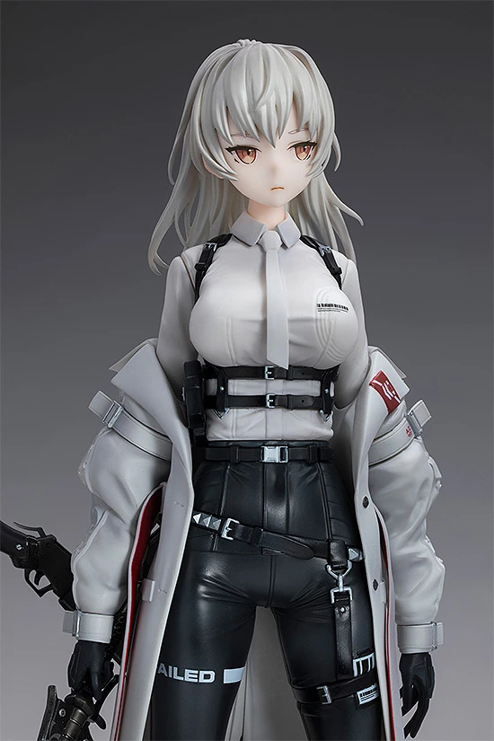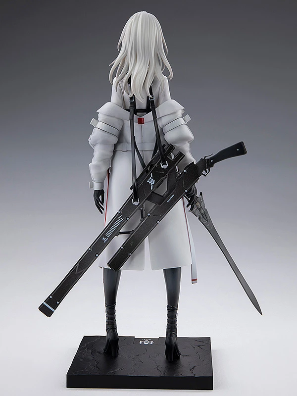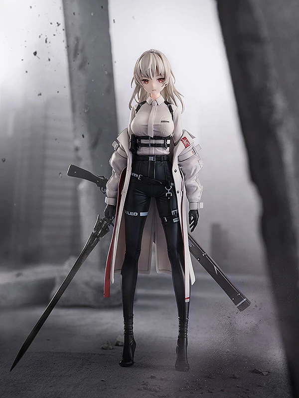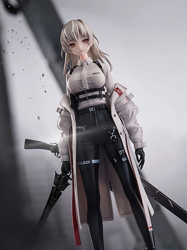 F01 poses holding a sword in hand with a long rifle strapped to her lower back as she gives an emotionless side glance. Detailed sculpting captures her slim physique and the small metal clasps and belts of her monochrome outfit along with its different textures. The wrinkled look of her jacket worn falling off her shoulders is also a nice highlight that further captures neco’s original artwork. A must-have figure for collectors of armed beauties and illustrations brought to life through figure form, don’t miss out on adding her to your collection!
