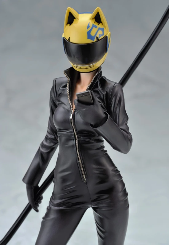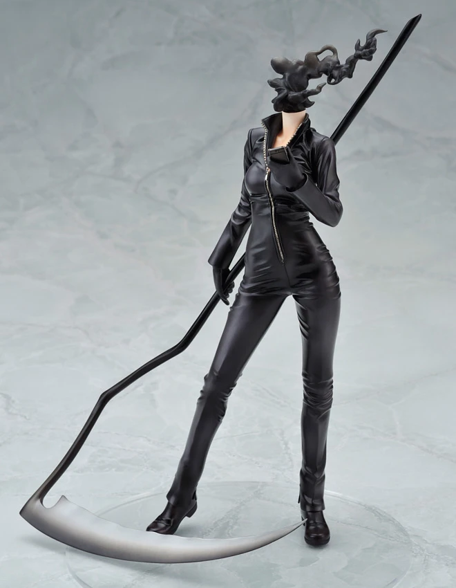 This figure is made of PVC and measures approximately 210 mm tall, and comes with both a base and additional parts. Featured accessories include a cell phone, scythe, and of course her trademark helmet that reveals her supernatural secret.