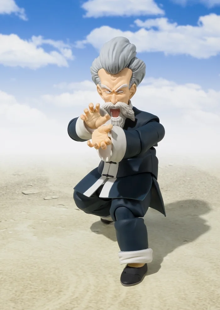 Jackie Chun, who is the master of Martial Arts, now joins S.H.Figuarts with full action! As well as a funny face for him, various optional parts recreate the scenes from the comics / TV series! This figure includes two optional face parts, seven optional right hands, six optional left hands, optional arm parts (R/L), a microphone part and dragon ball object (three-star ball at summoning Shenron).