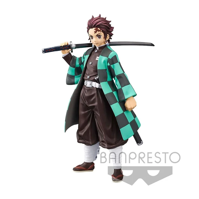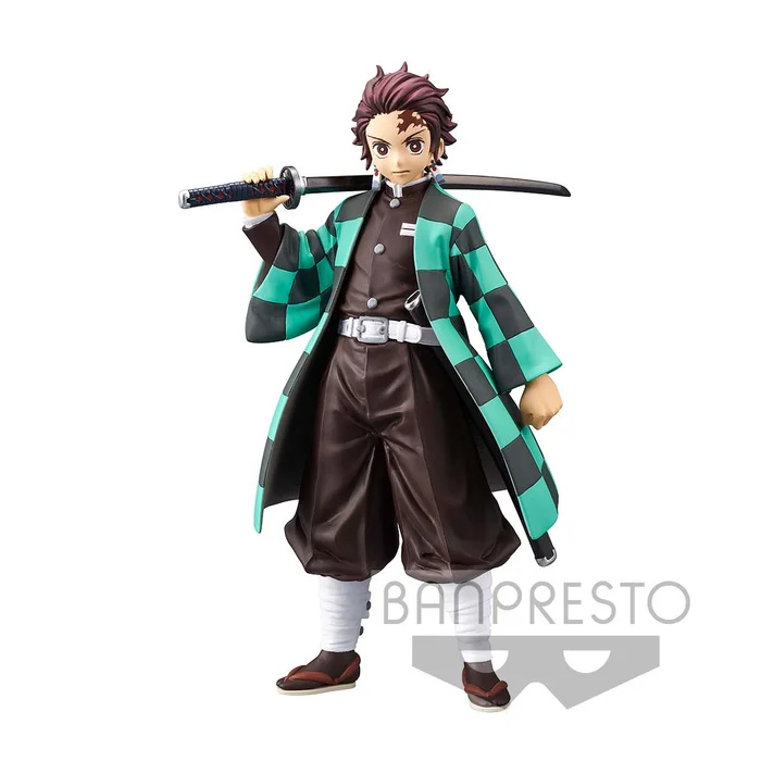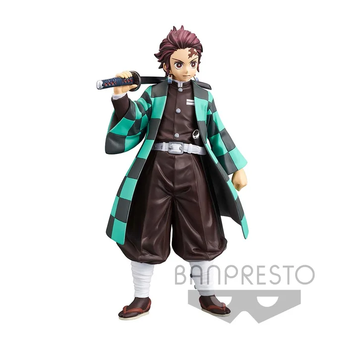 Demon hunter Tanjiro Kamado strikes an imposing pose for this beautifully crafted figurine from Banpresto! The non-articulated figure features the Demon Slayer: Kimetsu no Yaiba hero in his familiar green and black outfit with his sword swung over his shoulder.