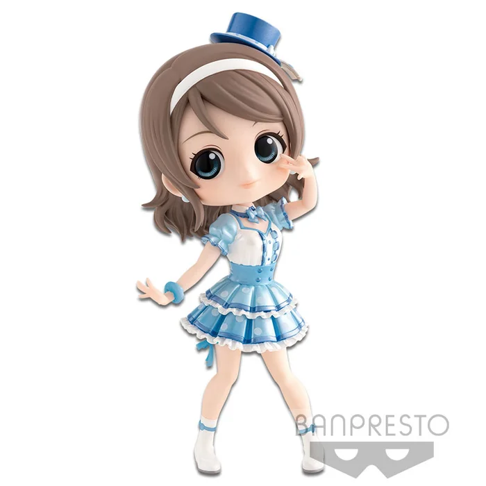 From Banpresto comes these Q Posket figures of You Watanabe from Love Live! Sunshine!!. Each measures 5.5″ and depicts the school idol as an adorable big-eyed chibi flashing the peace sign while posing cutely in a polka dot and ruffled baby blue dress with a matching mini top hat.