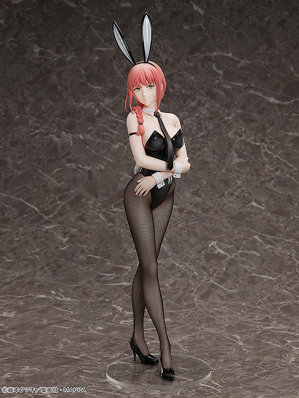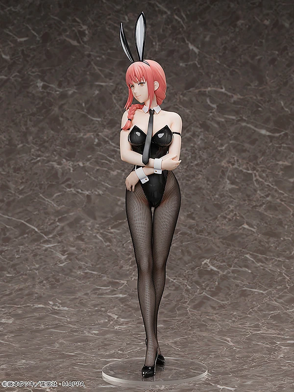 If you’re looking for a hypnotizingly beautiful bunny girl figure, look no further than this offering from FREEing of the Chainsaw Man series’ Makima! Measuring a mouth-watering 19.9″ tall, the high-ranking Devil Hunter has been sculpted to 1/4 scale. She’s outfitted in a shiny black bunny suit that accentuates her busty proportions. Standing straight and tall, both her arms and legs are crossed as she flashes a flirtatious smile. Probably to Denji-kun! Best of all, Makima’s tights are made with genuine fabric, soft and smooth to the touch!