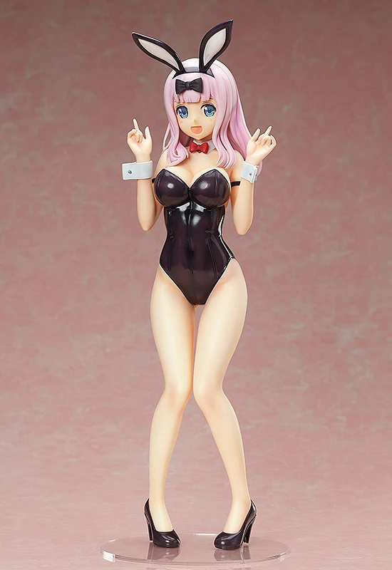 Due to popular demand, Chika has returned for you in her bunny girl suit! And this time, her smooth, long legs are completely bare! Produced in 1/4 scale, the adorable pink-haired supporting character of Kaguya-sama: Love is War -Ultra Romantic- will melt your heart. She’s dolled up in a shiny black one-piece outfit with matching shoes and perky bunny ears. Her hands are up in a cheerful pose that matches her joyous expression. So what are you waiting for? Catch this blue-eyed bunny before she hops away! And don’t forget to pick up