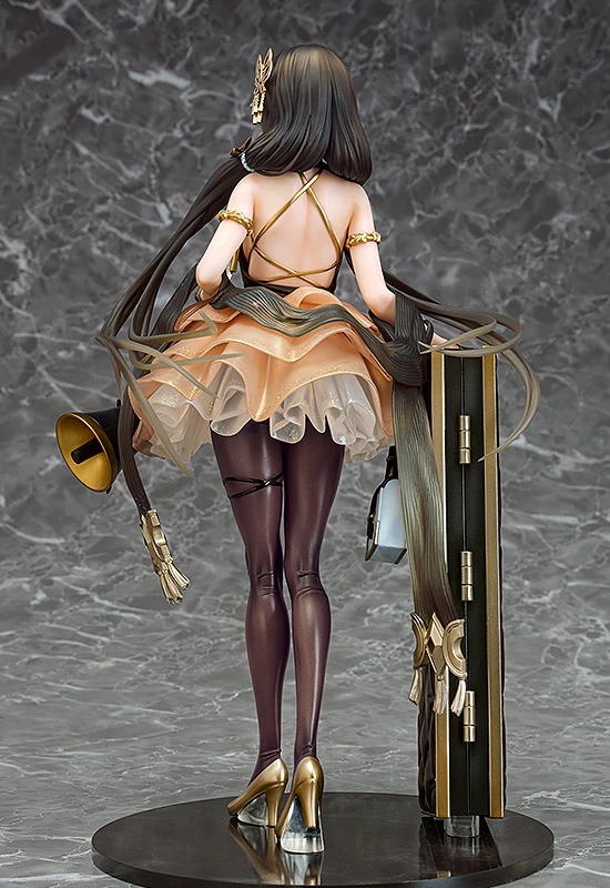 From the popular mobile game Girls’ Frontline comes a 1/7 scale figure of the leader of Pallete Squad, R0635, based on her fourth anniversary “Enforcer of the Law” skin from the game! Measuring 9.8″ tall, she is captured wearing a chic gold and black dress and holding a champagne glass in one hand with a megaphone hanging from one arm and a purse from the other as she gives a serious yet alluring gaze.