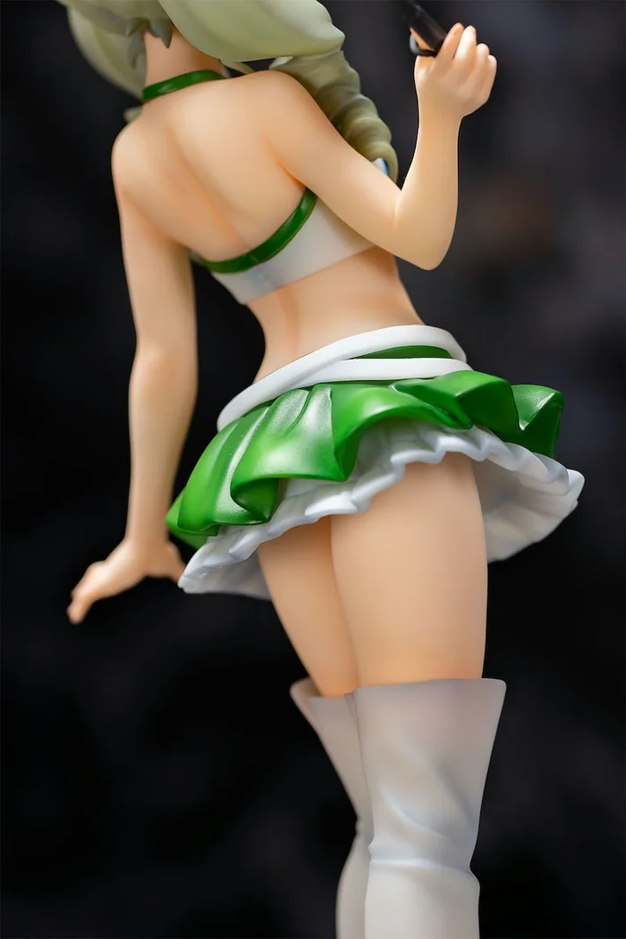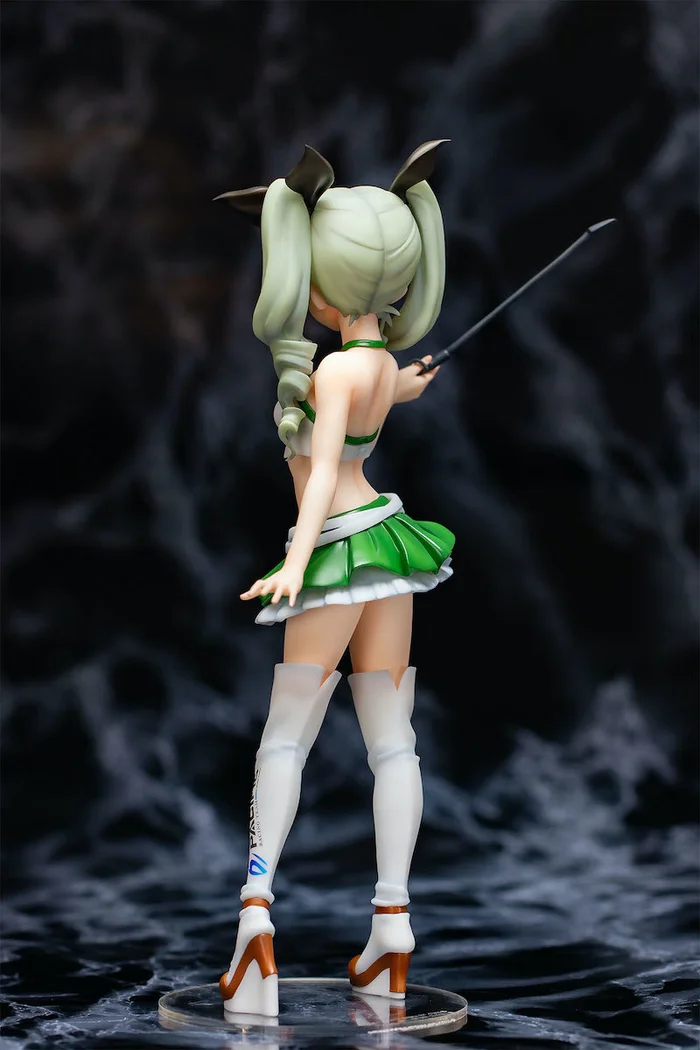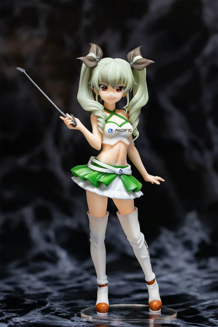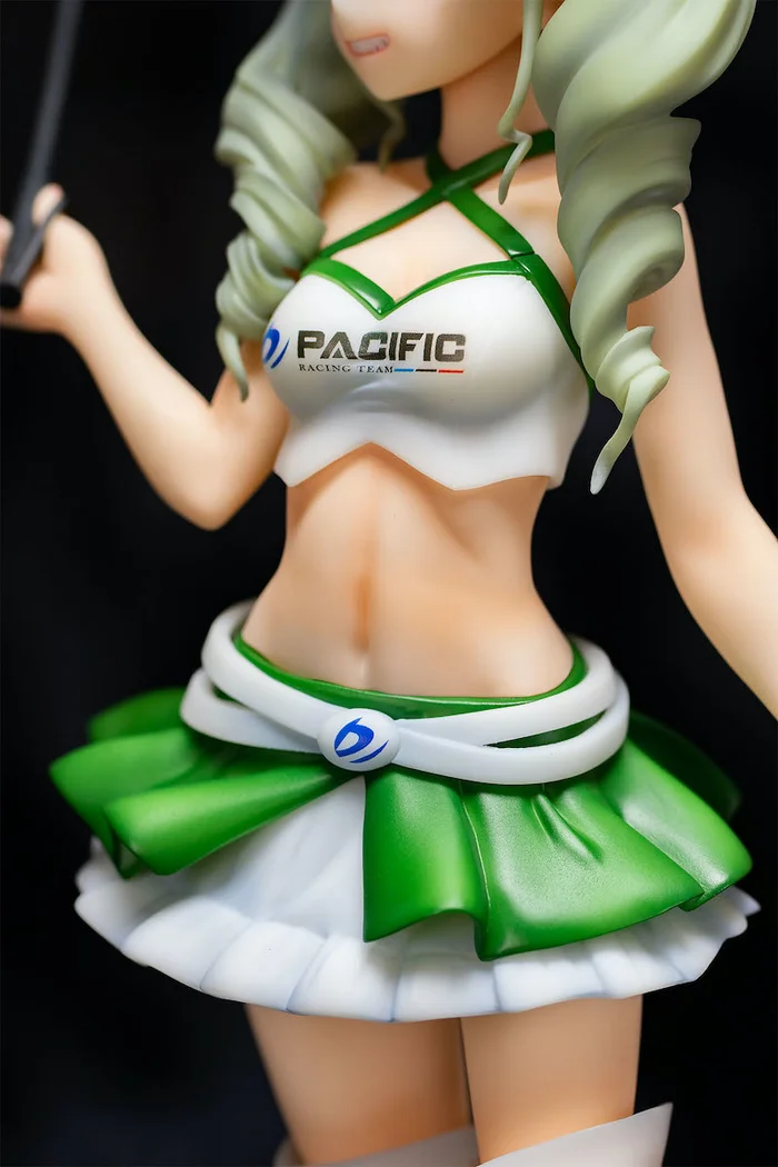 From Fots Japan with sculpting by POLY-TOYS and B-Full (BMG) comes this Pacific Racing Team collaboration 1/5 scale figure of Anchovy from Girls und Panzer. Measuring 11.8″, she is dressed up as a Pacific Racing Team Race Queen in a white cropped halter top, green ruffled short skirt, and long thigh-high boots. Her mischievous grin and coiled, long pale twintails have been faithfully recreated. She also seems to be holding a jockey’s whip. Display her together with Maho and Darjeeling (both sold separately)!