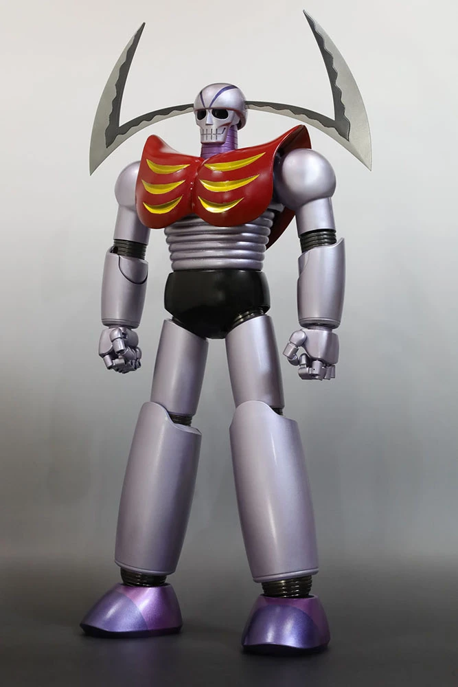 From the classic ‘70s robot series Mazinger Z comes the definitive figure of Garada K7, the Mechanical Beast that Mazinger Z first fights against! Produced as part of the Grand Action Bigsize Model series, the 15.7″ figure faithfully recreates its look from the anime using a mix of plastic and diecast parts that add a high quality look and feel. It comes with optional parts including small missiles for its eyes, a missile launcher, jet effect parts, and arm extension parts, so you can recreate your favorite scenes, including the battle scenes from episodes 1 and 2. Don’t miss out on adding this classic robot baddie to your collection!