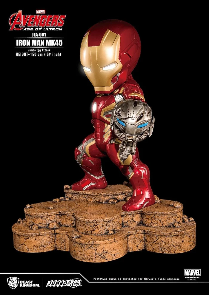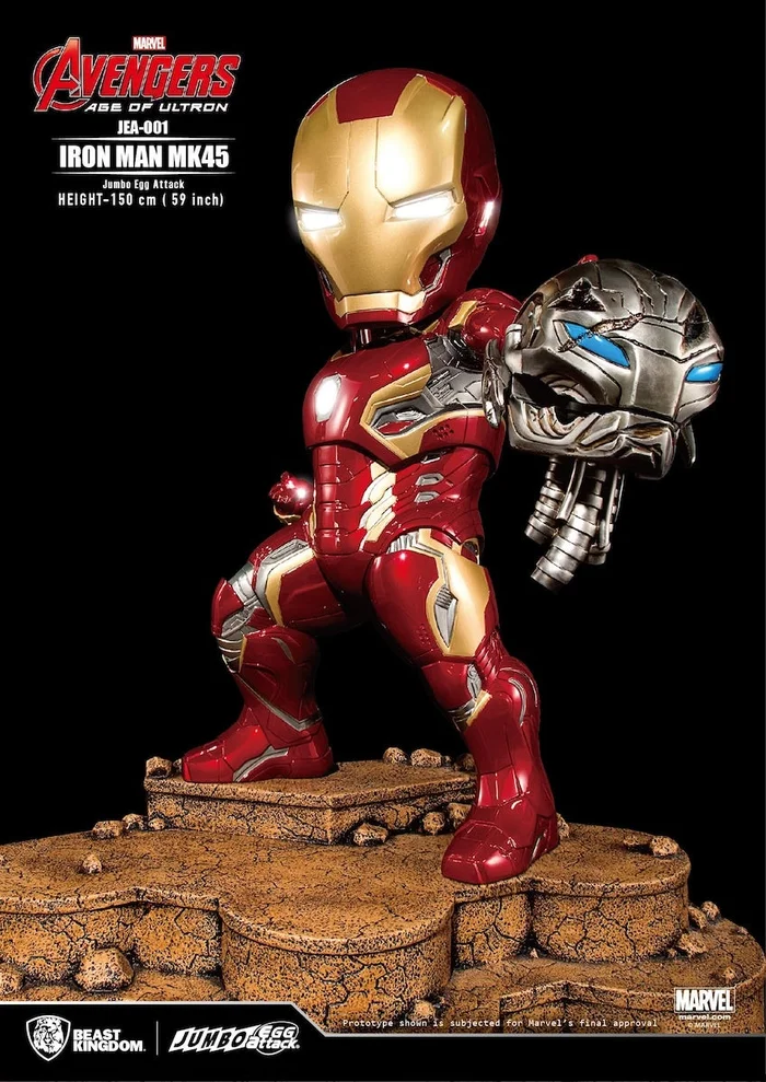 Beast Kingdom’s Egg Attack series is coming out with an all-new line of products: the Jumbo Egg Attack statue series. This series keeps everything collectors like about the classic Egg Attack series, but scales the figures up to 150 cm, using high tech 3D carving and professional hand painting to recreate Iron Man Mark 45 battle positions from Avengers: Age of Ultron.