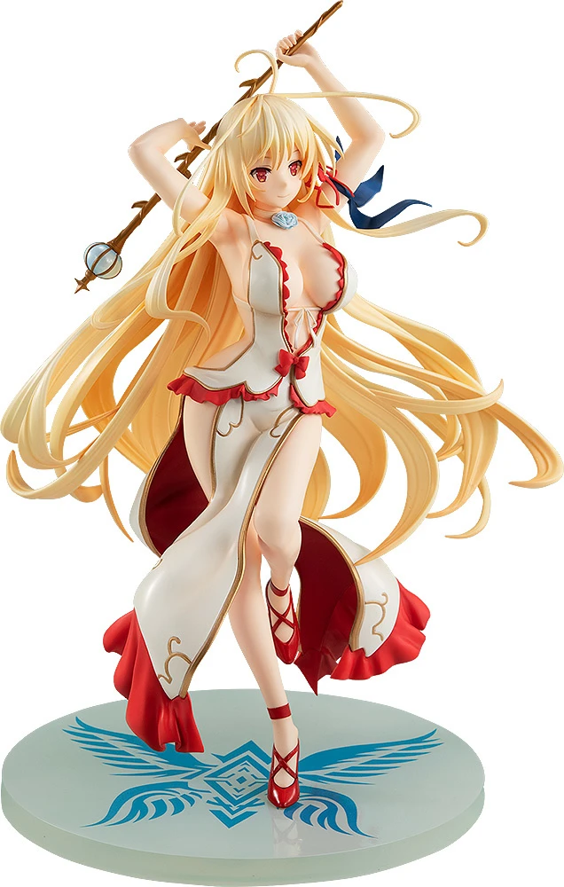 Just as illustrated in the the light novel and anime, Aliceliese has gorgeous, long blonde hair. The locks of hair look light as silk and match seamlessly with the flow of her skirt, swishing around her legs. The Ice Calamity Witch’s dress makes her a knockout, with plenty of bare skin exposing her charms. Holding a powerful scepter with both hands above her head and giving us a warmhearted smile, we can only dream that fate brings us together with her!