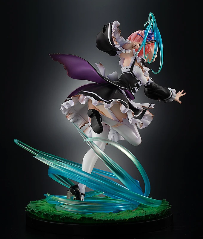 From Kadokawa with sculpting by Design COCO comes a 1/7 scale figure of the Roswaal mansion maid Ram from the popular anime Re:Zero -Starting Life in Another World- in a dynamic action pose! Measuring 9.3″, the figure recreates the intense scene of her battling against Roswaal as she works with Emilia to disperse Sanctuary’s barrier, and it’s packed with details to enjoy including the damaged look of her familiar maid outfit, the effects swirling around her as she uses her El Fura wind magic, and her fierce, determined expression. Don’t miss out on adding this action-packed figure of Ram to your collection!