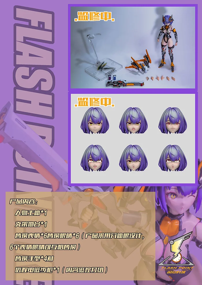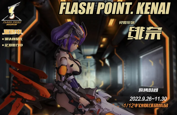 Flash Point introduces the beautiful heroine, Kenai! This blue-haired cyberpunk queen is produced in 1/12 scale and features a fully articulated body so that you can display her in countless poses! Her weapons include an electromagnetic rifle that matches the style of her armor. With six pairs of eyes, four pairs of hand types, and six facial expressions, there’s no end to how you can bring this animated character to life!