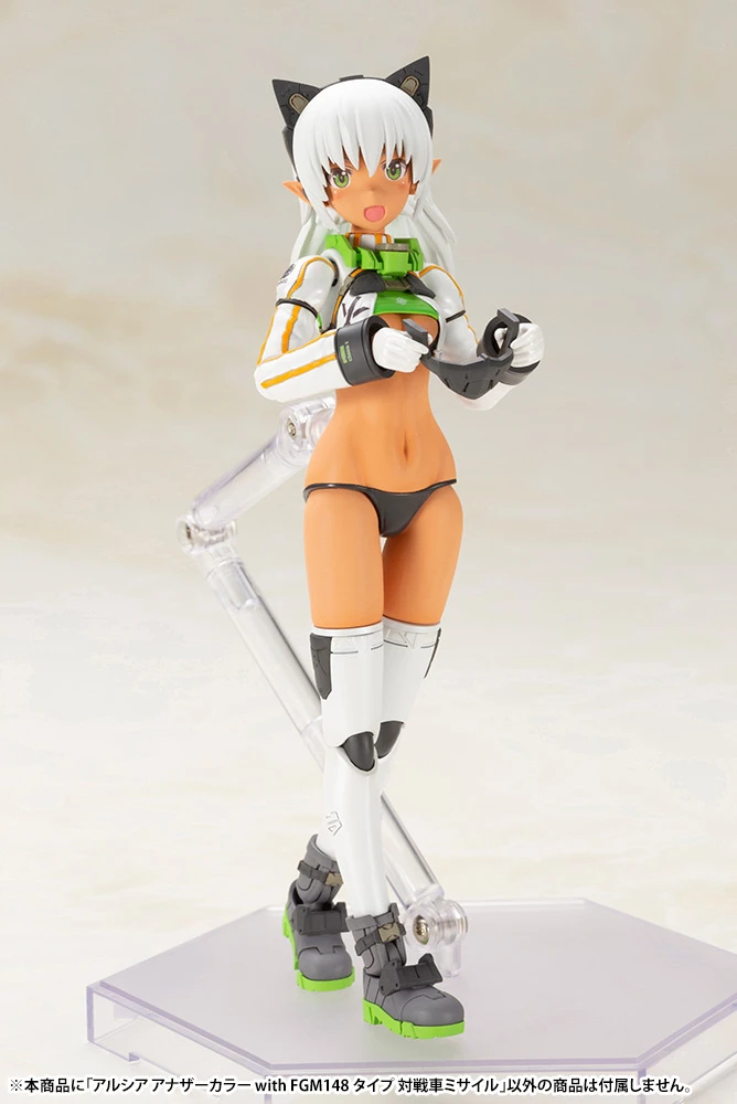 Kotobukiya treats us to a plastic articulated model kit figure of Arsia from Humikane Shimada Art Works II! This “Another Color” version comes with three adorable face plates to bring Arsia’s expressive personality to life! For additional parts, the set includes the Little Armory FG148 Type Anti-Tank Missile and a removable hat for Arsia! Have fun assembling this cute and deadly bishoujo!
