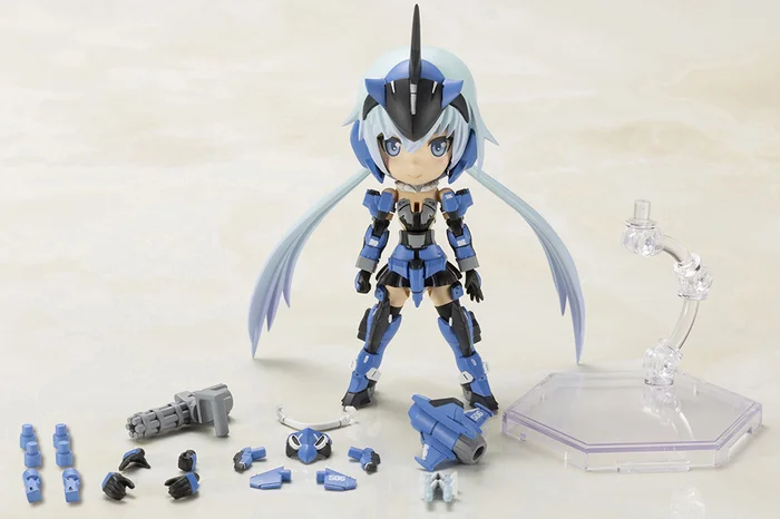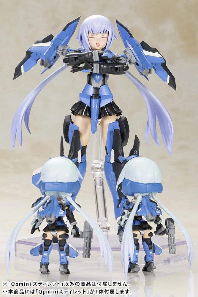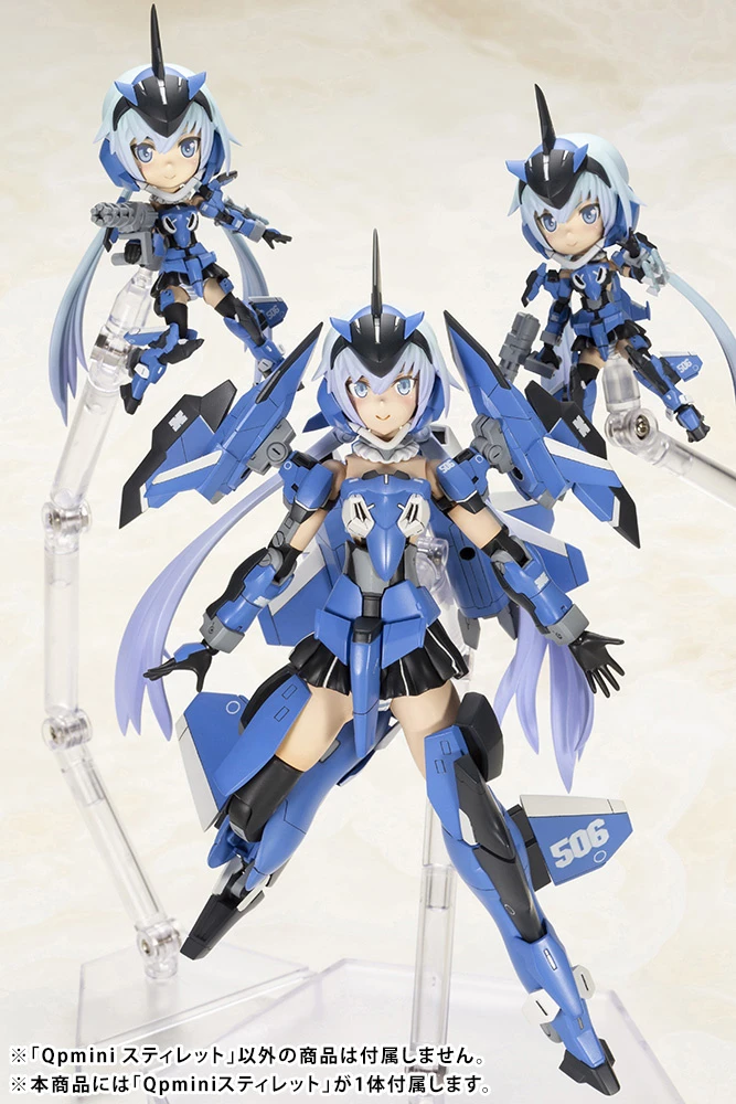 From Kotobukiya comes Qpmini, a new line of hand-scale plastic models featuring a high level of precision modeling and mobility never before seen in such a small scale, and the second character to join is Stylet from the popular Frame Arms Girl series! Measuring 3.1″ tall, her bishoujo design by Fumikane Shimada has been squashed down into adorable chibi form, and though small in size, she is packed with detail and features 24 points of articulation.