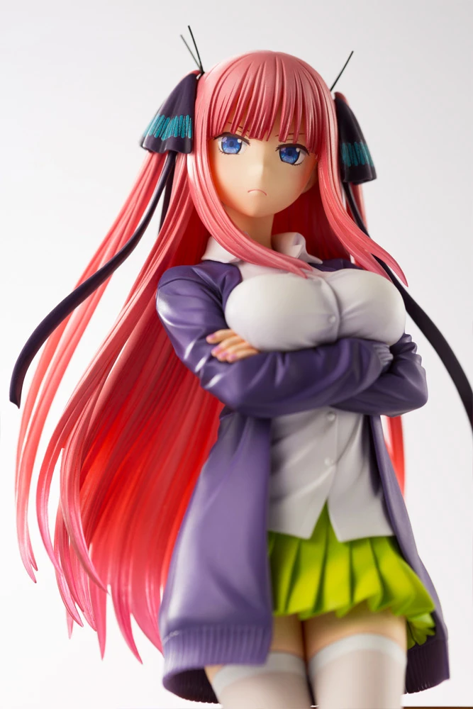 From Kotobukiya with sculpting by Koei Matsumoto comes a 1/8 scale figure of the second sister of the Nakano Quintuplets, Nino Nakano, from the popular anime The Quintessential Quintuplets! Measuring 8.7″, she has been sculpted in her Asahiyama High School uniform as she leans against a desk with her arms crossed giving a sharp gaze that shows her tsundere-like personality. There are plenty of details to take in from every angle, including her long, flowing hair and the realistic look of her outfit down to the ribbed hem of her jacket and the individual pleats of her skirt. She also comes with an alternate smiling face part, giving you the option of displaying her how you’d like. Add her to your collection and display her together with her sisters!