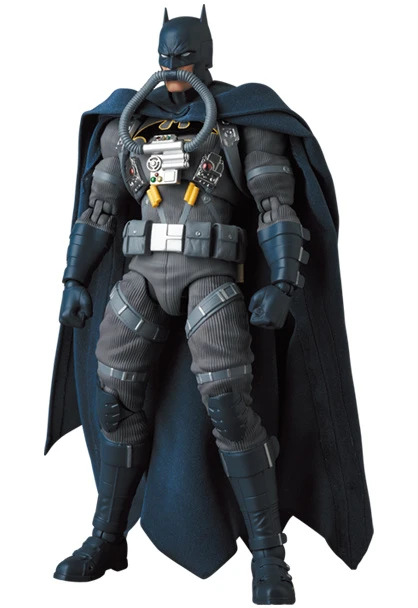 Thanks to Mafex and Perfect-Studio, Batman returns as a Batman: Hush Stealth Jumper figure! This articulated action figure features stealth jumper breathing gear and a uniquely designed Batsuit. And the included movable stand and authentic cloth cape will allow you to display the Caped Crusader in all kinds of dynamic poses! Last but not least, Bats comes with a Batarang to knock out his enemies from a distance!
