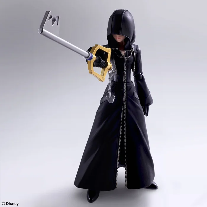 Xion’s accessories include her keyblade, the “Replica Kingdom Key” as well as interchangeable head sculpts, one with a smile and the other wearing the hood, and six types of hand parts, allowing collectors to recreate their favorite scenes from the game.