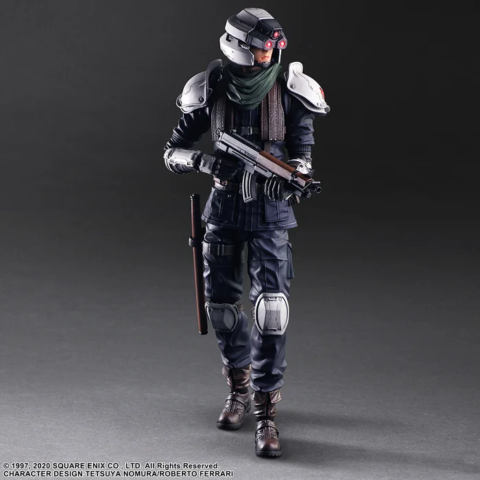 From Square Enix’s Play Arts Kai line of high quality action figures comes a Shinra security officer from the hit game Final Fantasy VII Remake! Measuring 10.5″ tall, the officer’s design has been faithfully recreated and meticulously detailed down to the look of their Shinra regulation three-scope helmet and the different textures of their uniform including their scarf, jacket, and shoulder and knee armor. He comes with a variety of weapons including a tonfa, machine gun, shotgun, and stun baton. Plus, also included is a variety of interchangeable hand parts including a hand holding a grenade, so you can easily recreate fun scenes from the game.