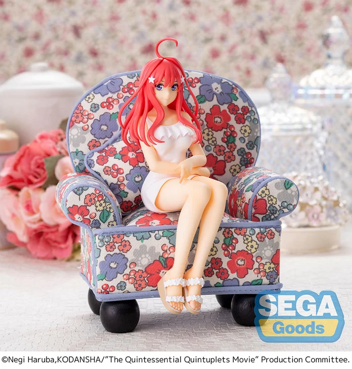 From SEGA’s Premium Perching Figure line of affordable prize figures that look great perched on the edge of a desk or shelf comes the fifth-born Nakano sister from The Quintessential Quintuplets the Movie, Itsuki Nakano! She is captured sitting cutely as she shows off a lovely new look consisting of a white dress and floral strap sandals. She’s even still wearing her signature star-shaped hair pins, only this time they’re in white to match her outfit!