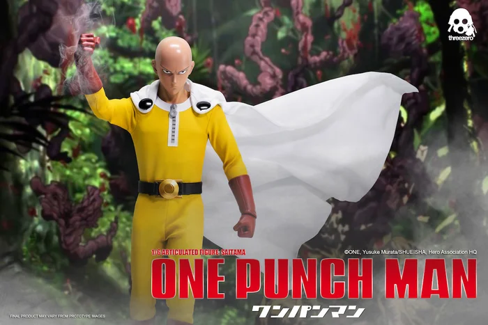 Protecting yourself and your figure collection is nothing when you have the powerful Saitama from One-Punch Man on your side! Made by ThreeZero, this unusual hero is an articulated figure that stands at 12” at 1/6th scale.