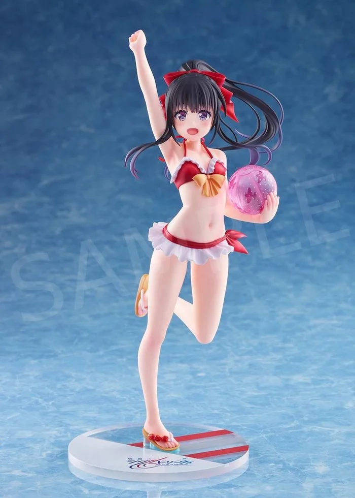 From Aniplex with sculpting by ATOMICBOM SUZUKI comes Valkyrie girl Miyako Muguruma from the popular TV anime Warlords of Sigrdrifa ready for summer fun in a swimsuit! The 1/7 scale figure is based on artwork drawn by Takuya Fujima specially for this figure and features Miyako in a lively pose that shows her energetic personality. She wears a frilly white and red bikini and holds a beach ball as she gives a dazzling and friendly smile and her long black hair flutters with her movement. She stands on a stylish base featuring her character color and makes the perfect pair to the separately sold